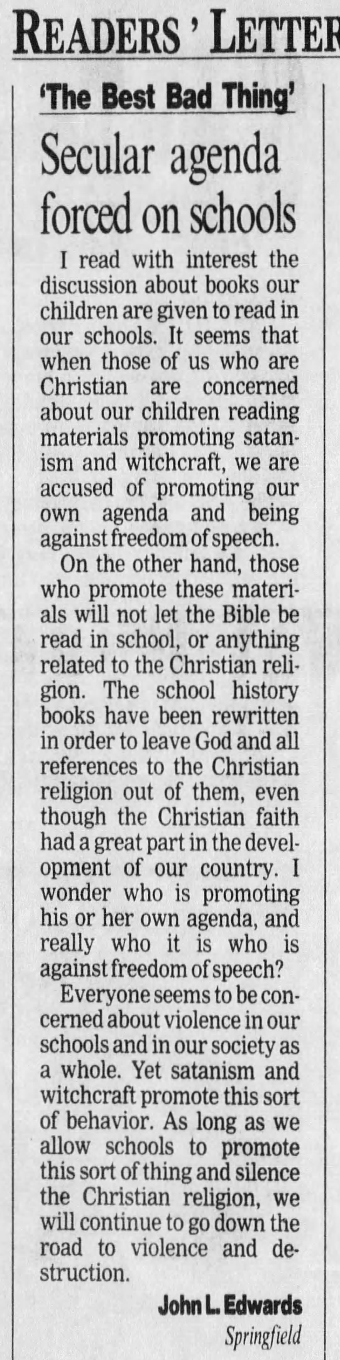 Because of these views, Edwards engaged in a public debate with Bill Jackson in January 1988 at the Southwest Church of Christ in Austin, Texas. The debate addressed whether individuals who had divorced and remarried without scriptural grounds were continuing to live in adultery or whether the adultery occurred only in the act of remarriage. The discussion reflected the intense interest and doctrinal concern surrounding the subject within churches of Christ at the time.