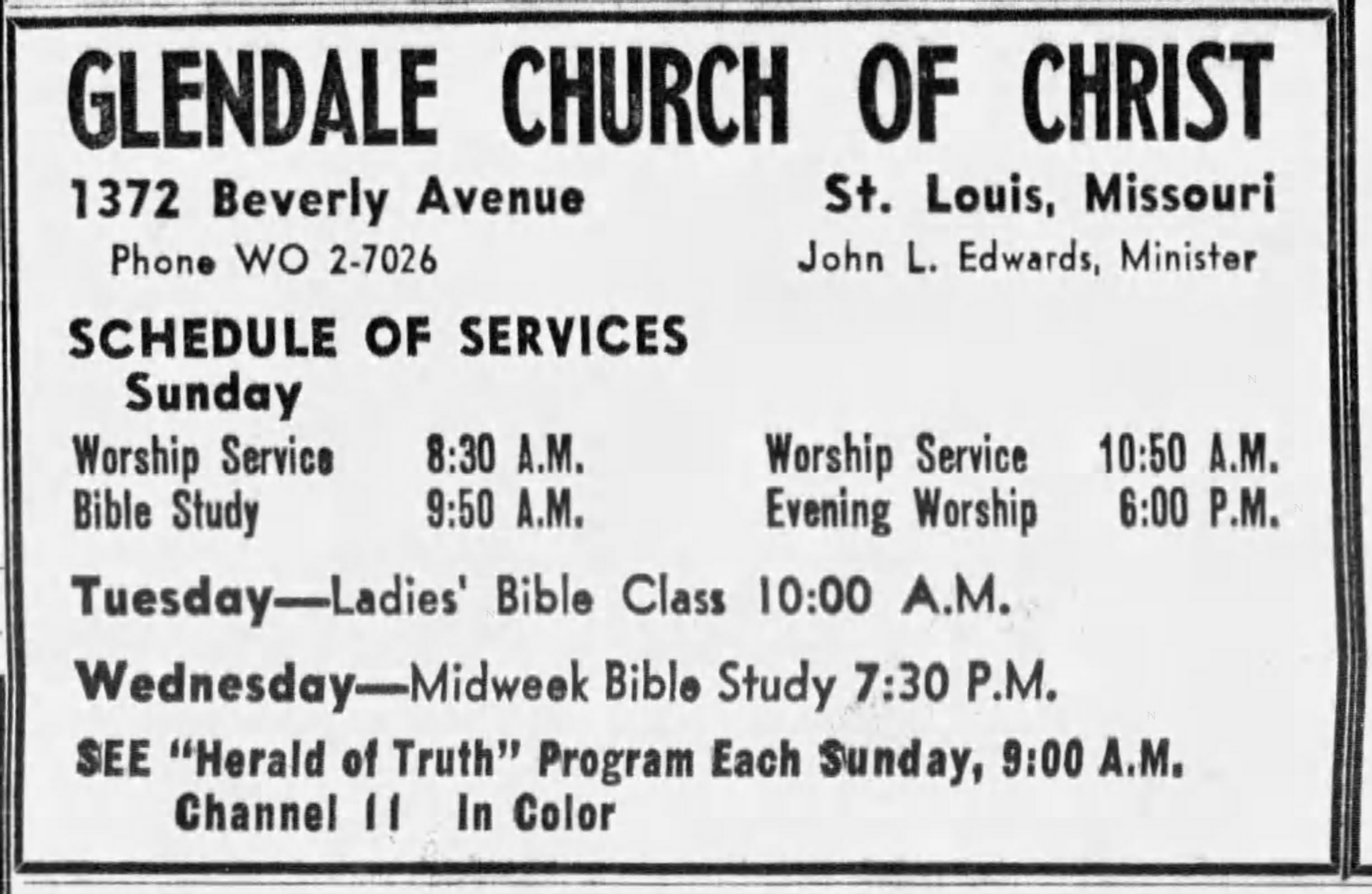 In 1964 he began a full-time preaching career in St. Louis, Missouri, serving with what is now the McKnight Road Church of Christ. His preaching career lasted approximately twenty-five years, and he became known both for his teaching and his written work. Edwards was a capable writer, contributing articles to respected brotherhood publications such as the Firm Foundation and the Gospel Advocate.
