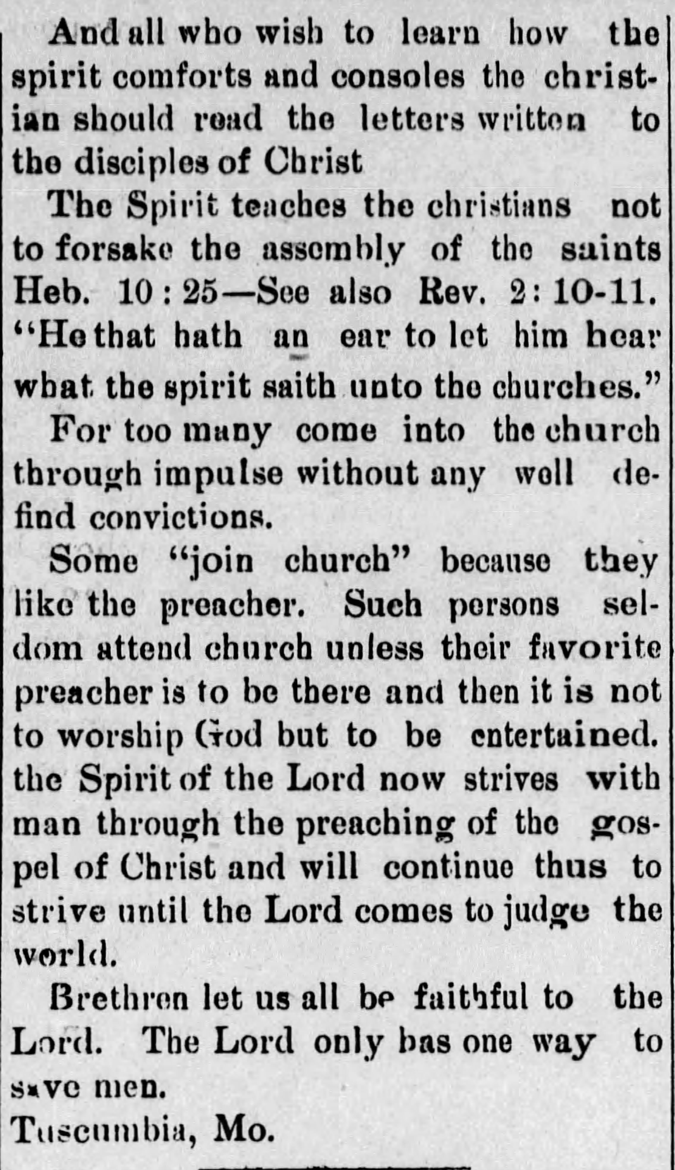 Those who wrote of him after his passing said that, through his life and work, “the world [was] made a better place in which to live.” His name became linked with the early, formative days of the congregations in and around Tuscumbia and Spring Garden.