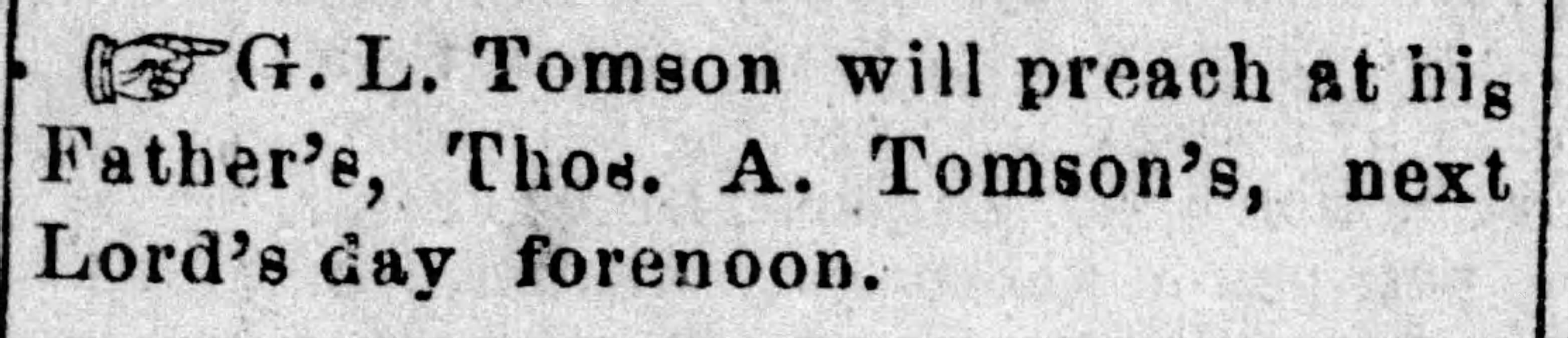 Elder Greene Lee Tomson was a pioneer preacher and elder among the Disciples of Christ in central Missouri, remembered for his simple faith, steady character, and half a century of gospel work.