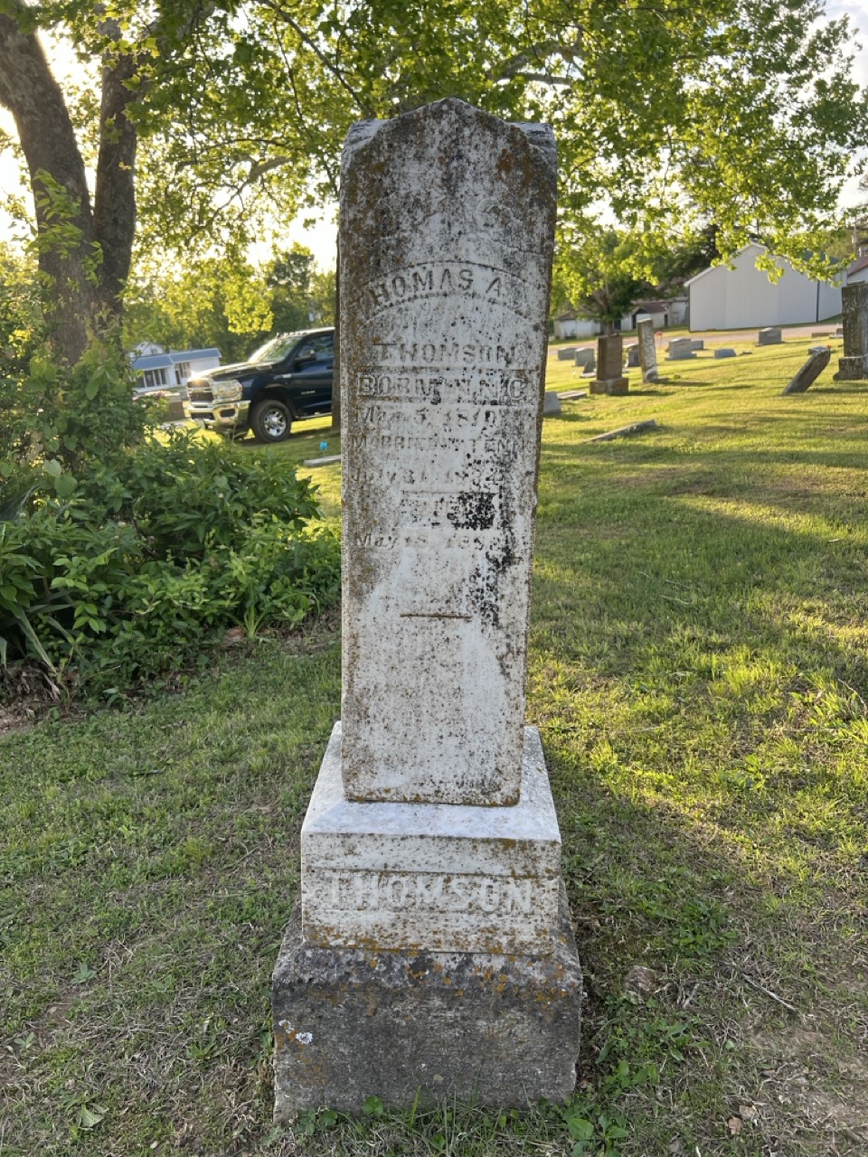 Thomas A. Thomson, father of G. L. Tomson, monument in the foreground