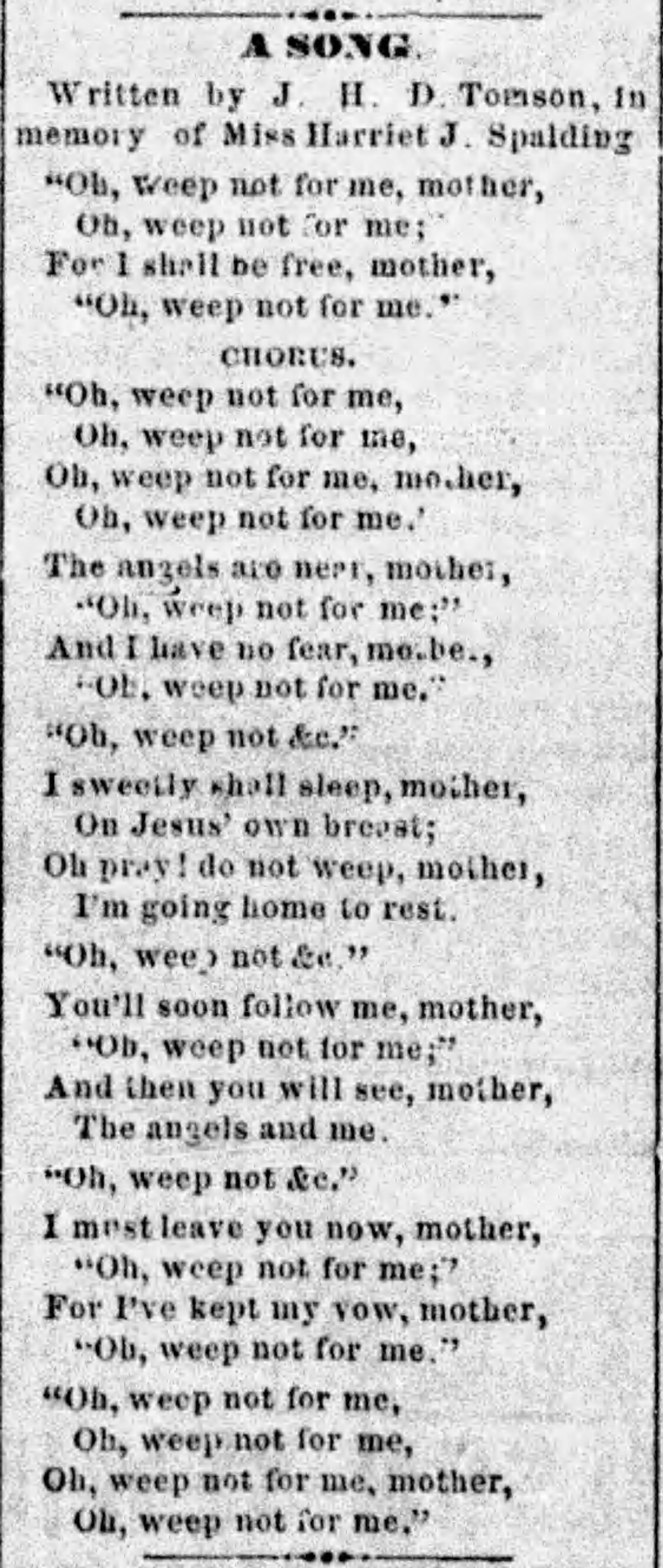 Several more lines of his songs are listed in the obituary, but are illegible in this copy.