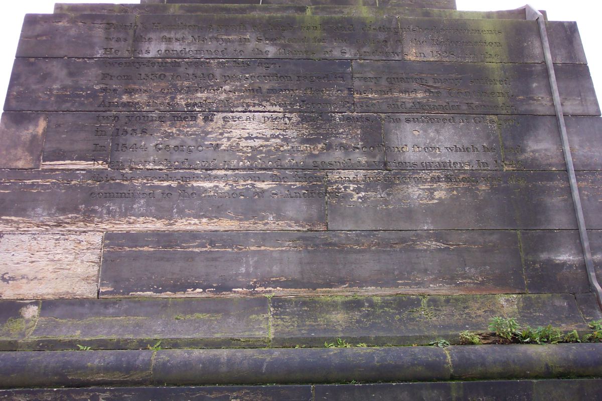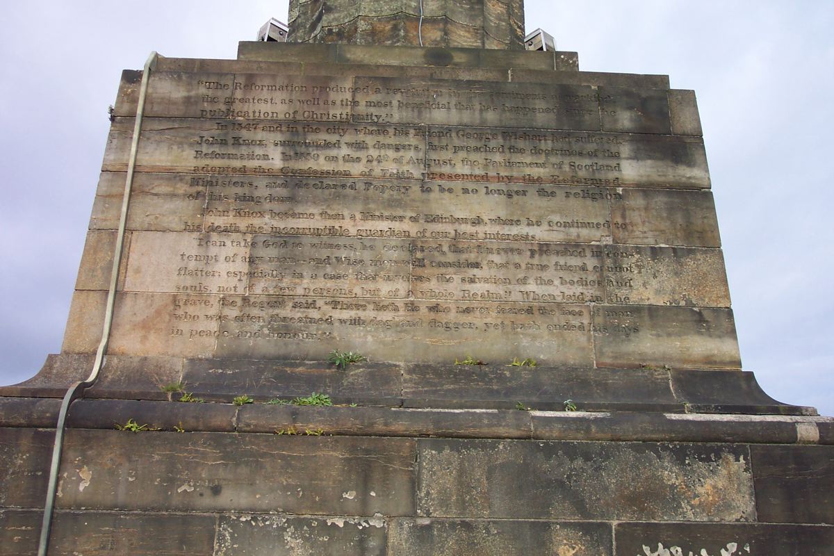 In the large old cemetery, at the pinnacle of the hill, and behind the old cathedral, is the monument to John Knox and the reformation. Each side of the monument expresses the long fight for religious freedom in the country of Scotland citing the sacrifices of men like Patrick Hamilton, George Wishart, and of John Knox. If you every visit the old city, a visit to the Glasgow Necropolis is a must. In so doing, you will walk where many great men in Scottish history trod, and now in which they rest.