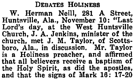 Debate Between J.A. Jenkins And A Holiness Preacher
