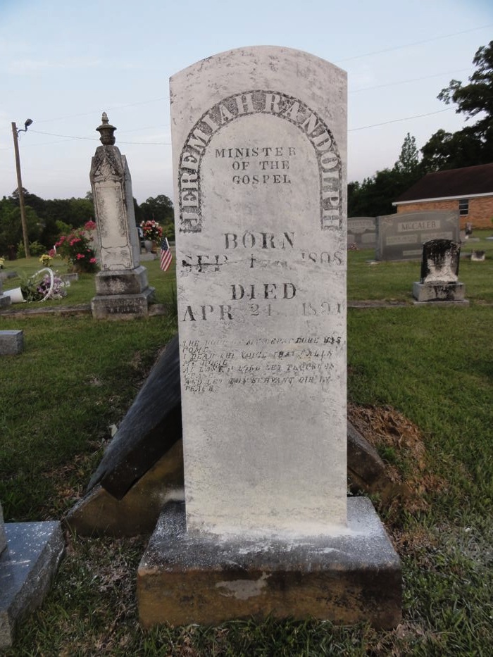 Randolph is buried in Fayette County, Alabama in the New River Church of