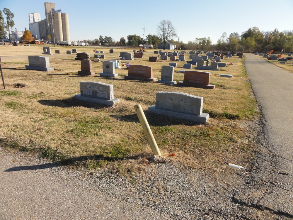 C.E. McCord is buried in the Corning Cemetery, Corning, Arkansas. Several miles north of Paragould is the town of Corning. On Hwy. 62 in town, turn north on SW 2nd St. The road will take you into the cemetery. Go through gate and head straight ahead to Section 12. When you see the Section # on the right, look back to the SW corner. This is the location of the McCord plot.