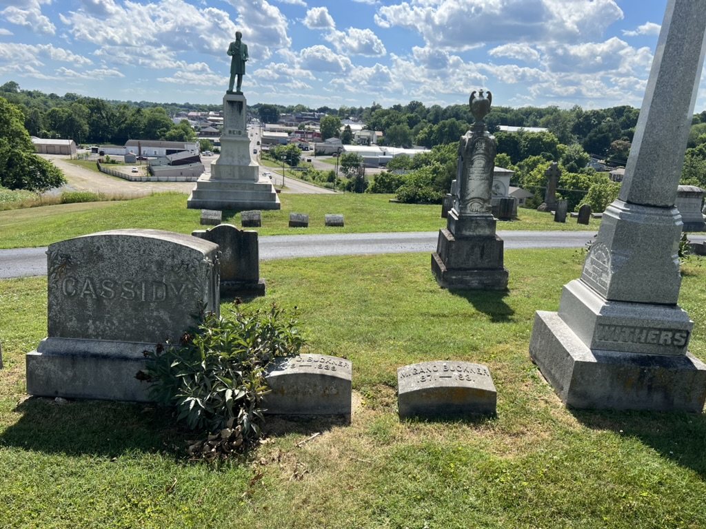 The Buckner family plot is in the Machpelah Cemetery in Mt. Sterling, Kentucky. East of Lexington, Kentucky, take I-64 to Mt. Sterling exit, (Maysville Rd. (Hwy. 460). Head into town. Turn left on E. Locust St. (Co. Rd. 713) and you will head up a hill and see Macpelah Cemetery on both sides of the street. You will want to go to your left into the oldest part of the cemetery. Go all the way to the rear of the cemetery where the Buckners are in the edge of the section just inside the drive. GPS below is of the actual grave location.