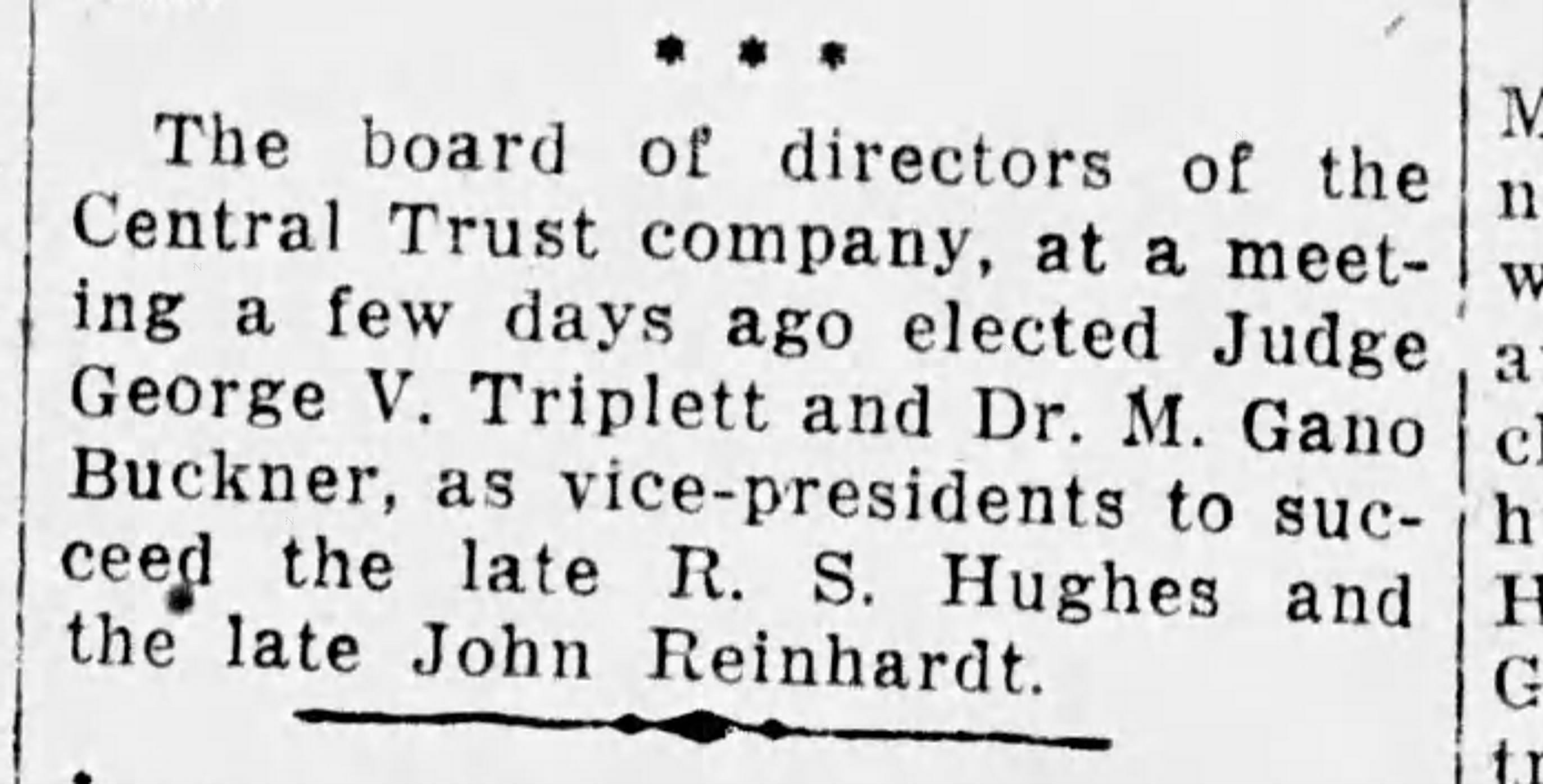 While in Owensboro, he became a Rotarian and served as President of the Rotary Club for many years. This cast him in the public eye in a significant way. In 1928, he was named Vice-President of Central Trust Company, a local banking corporation.