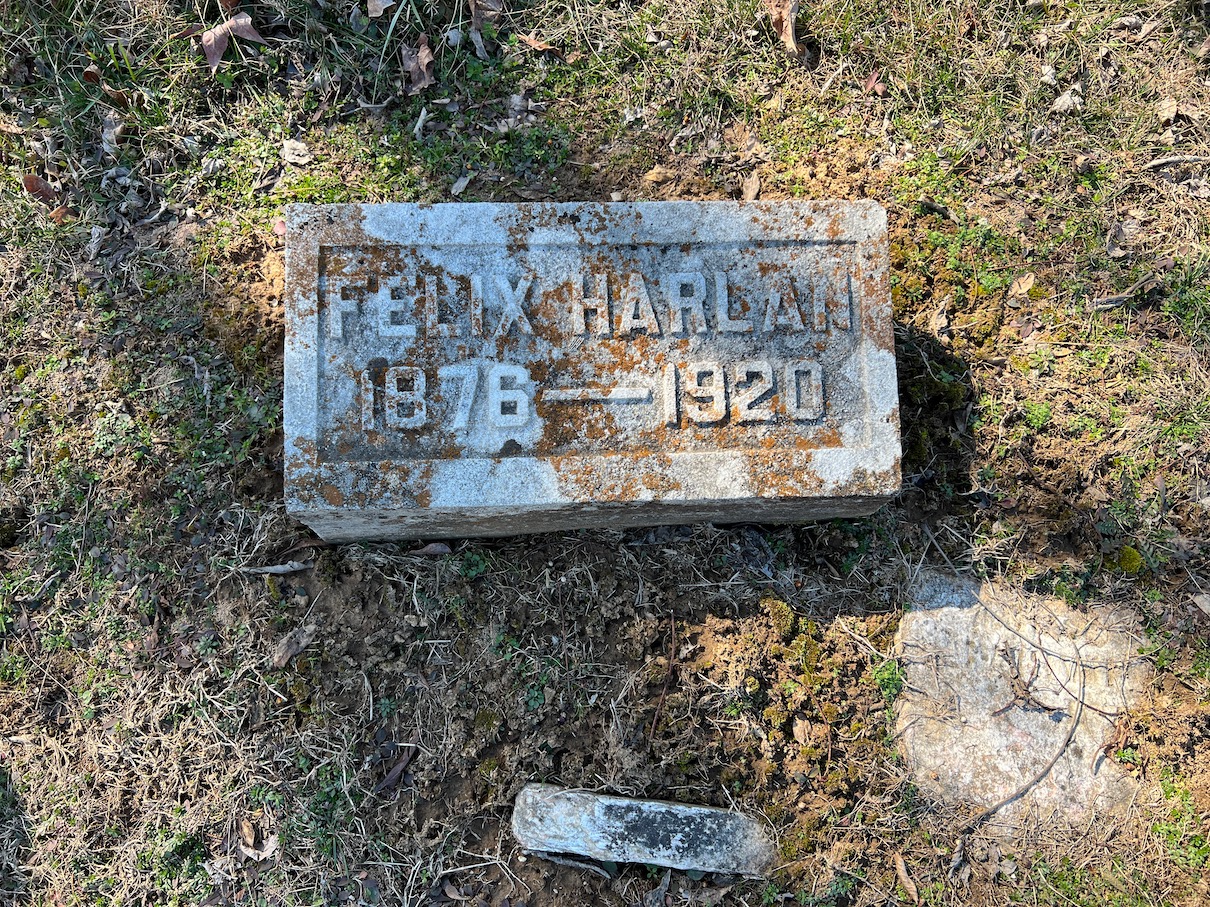 Felix Harlan was born February 8, 1876 in Warren, Knox County, Kentucky. He was the first son of Edward Thomas Harlan (1837-1909) and Annie Rebecca Ellis (1852-1922). He had two older sisters from a previous marriage, but had nine younger siblings. In his youth, the family moved to Rockfield, just west of Bowling Green, and was his family home the rest of his days. Edward served in the CSA during the Civil War as Pvt Co. 8, 4 McLemore's Tenn.