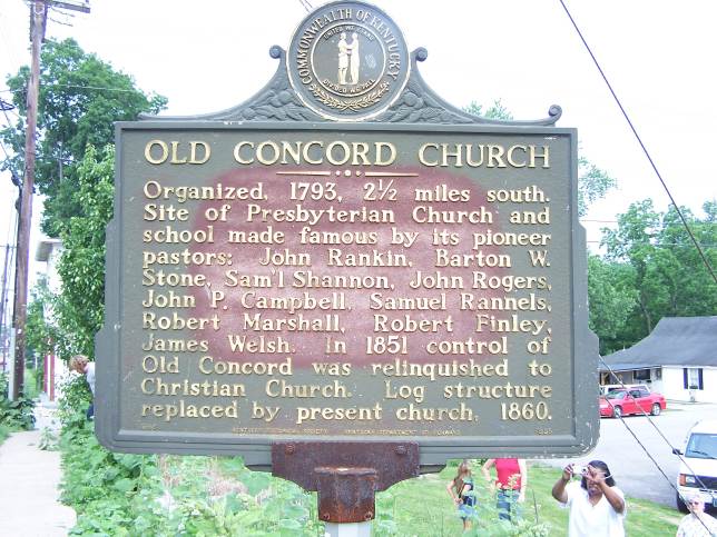 Old Concord Church was one of the original sites of the Kentucky Revival at the beginning of the 19th century. It was located north of Cane Ridge about 12 miles, and just south of the city of Carlisle, Nicholas County, Kentucky. It was a Presbyterian church at one time whose minister, Barton W. Stone, led many to give up their creeds and man-made doctrines to take the Bible as their only guide for religious practice.