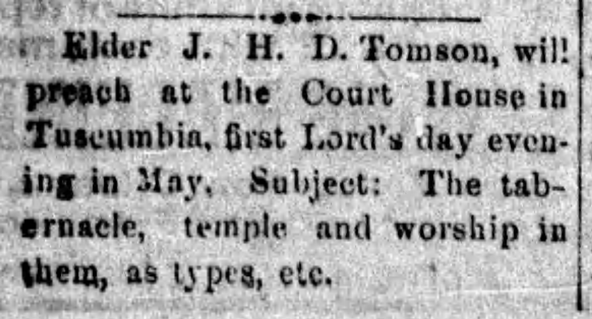Tuscumbia Christian Church, organized 1878, Rev. Josiah H. D. Thomson, pastor.