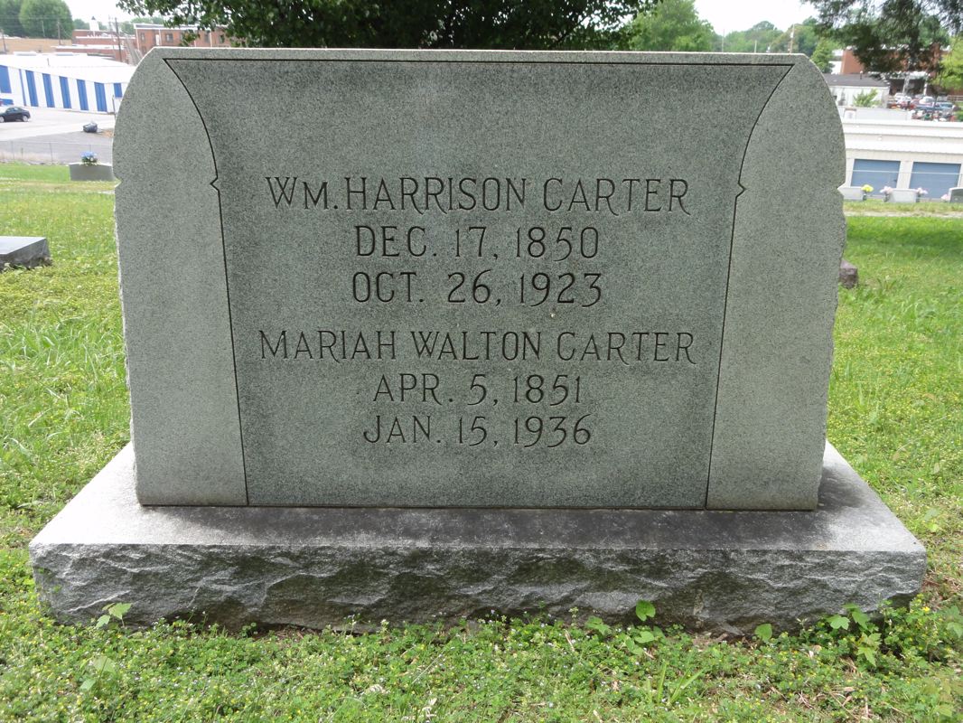 William H. Carter is buried in Lafayette, Tennessee in the Walton Cemetery. It would appear that Carter was related to the Waltons through his wife's family. The Walton Cemetery is located next to a nursing home in Lafayette. From Nashville, head north on I-65. Take Exit 95, Hwy. 386, Viet Nam Parkway toward Gallatin. In Gallatin, head north on Hwy 31E. Go through Gallatin, and continue on Hwy. 31E. When coming into Westmoreland, turn right on Hwy. 52. Head into the center of Lafayette. Turn left on Chestnut St. Then, take quickly turn left on Times Ave. Pass the Knollwood Manor Nursing Home. The entrance to the cemetery will be just past the Nursing Home on the right. Go into the cemetery, up the hill. Park in front of the first tree you come to. Go up toward the nursing home and look for the Carter Monument. Plot should be easily located.