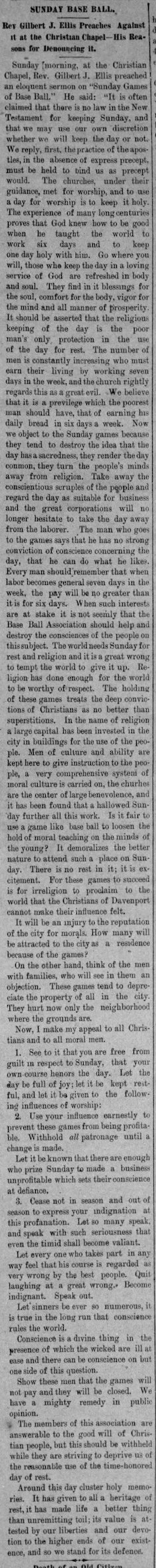 Article Against Sunday Baseball Games
