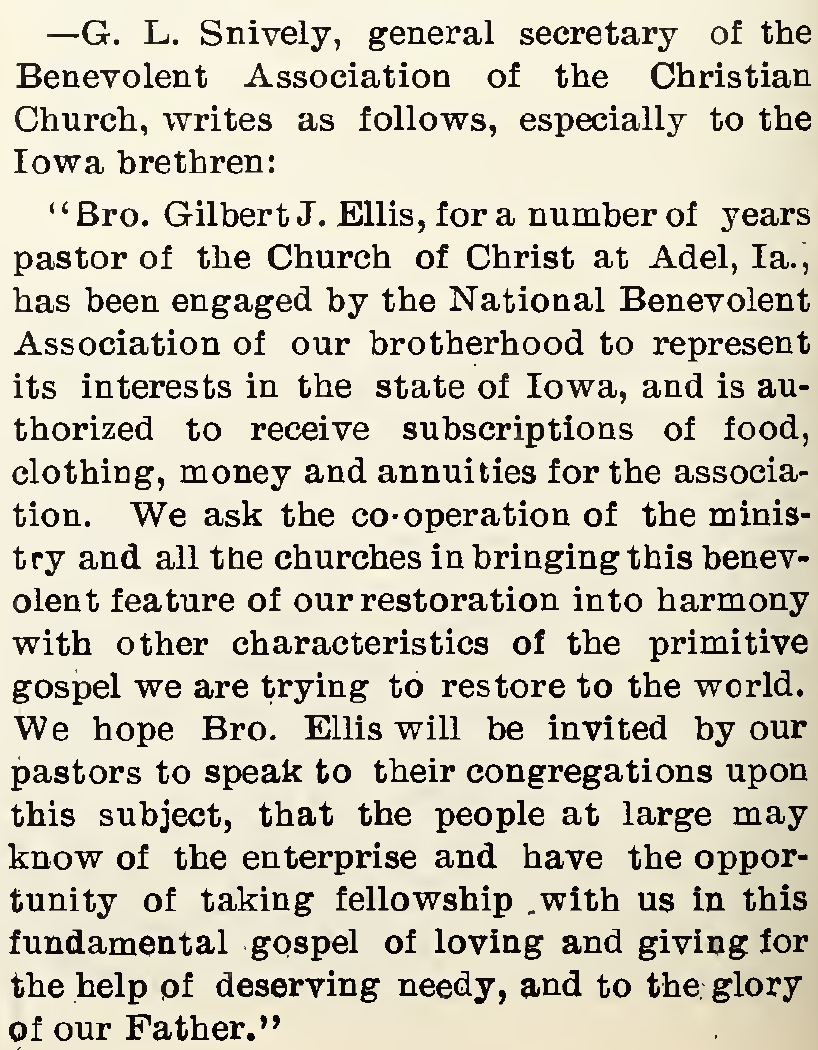 After attending Bethany College in West Virginia, he began preaching in Portsmouth, Ohio in the early 1880s. In the mid 1880s he moved to Davenport, Iowa where he preached at Christian Chapel. Sometime in early March, 1889 he moved to Knoxville, Tennessee where he preached for the church of Christ on Park Street. In May of that year he preached the Baccalaureate sermon at Milligan College. He served the church there for about five months. Then, in September it was announced that he had gone to Galesburg, Indiana, to preach. In 1894, he moved to work with the (Church of Christ/Christian church on the corner of Nelson and Farmington Avenues, in Minneapolis, Minnesota. The following year he moved to Galesburg, Illinois to preach. In 1899 he moved to preach for the church in Adel, Iowa. In 1904 he preached in Athens, Illinois. Then, in 1906 he moved to Payson, Illinois and preached for the First Christian Church in that city, and made a trip back to Davenport, Iowa where he had preached before. In 1908 the family moved to work with the church in Carrollton, Illinois. By 1910 the Ellis family had moved back to Knoxville where he preached for the Lonsdale Christian Church. In 1915 he preached for the Anderson Avenue Christian Church in Knoxville.