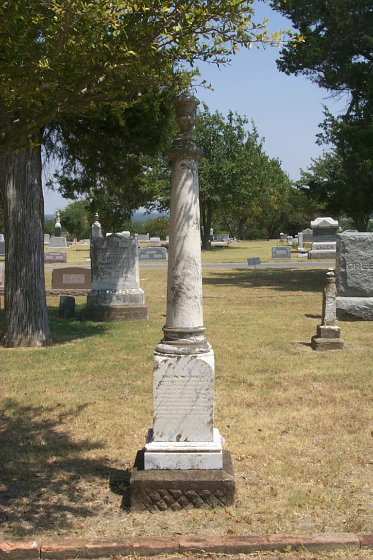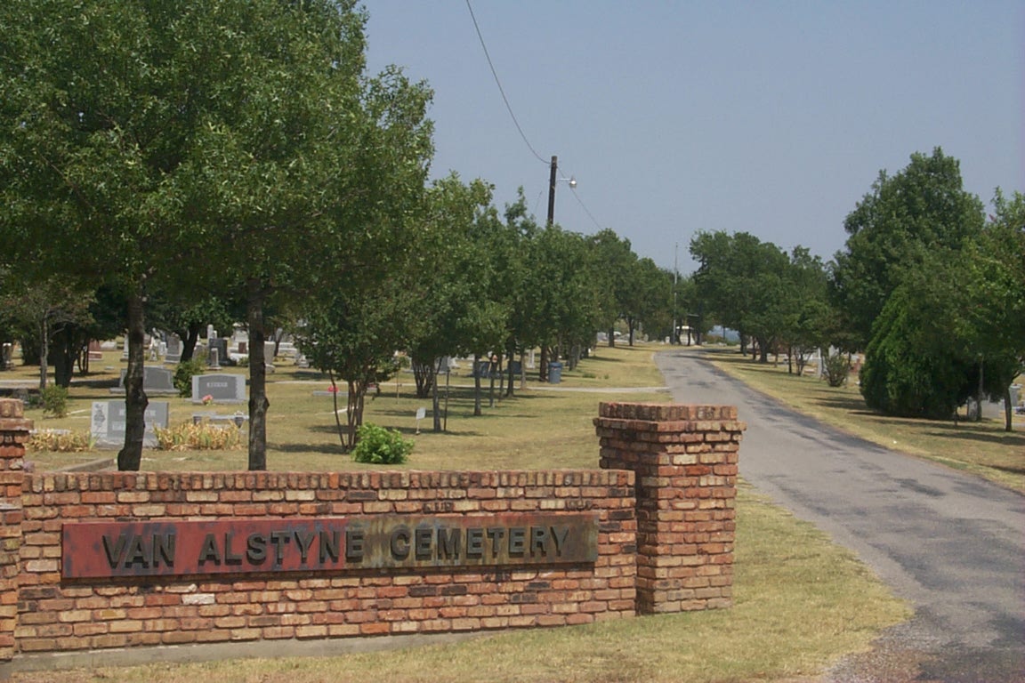 Head north out of Dallas, Texas on State Highway 75 about 50 miles. Look for Van Alstyne exit and turn right on FM 121 toward town. In town, turn right on Wilmeth Rd., (Hwy 5 south) and go two blocks. Turn left on E. Fulton St., then right on Preston St.. Go two blocks and turn left (south) on Austin St. Cross the railroad tracks. Street becomes E. Austin. The road will head straight into the Van Alstyne Cemetery. (east side of town). Head straight into the cemetery. Go until you see a Texas Historical Marker on the left. The McKinney Grave Plot is about 50 feet behind the marker (north). While there be sure and visit the grave of long-time friend, B. F. Hall, also buried in the McKinney family plot.